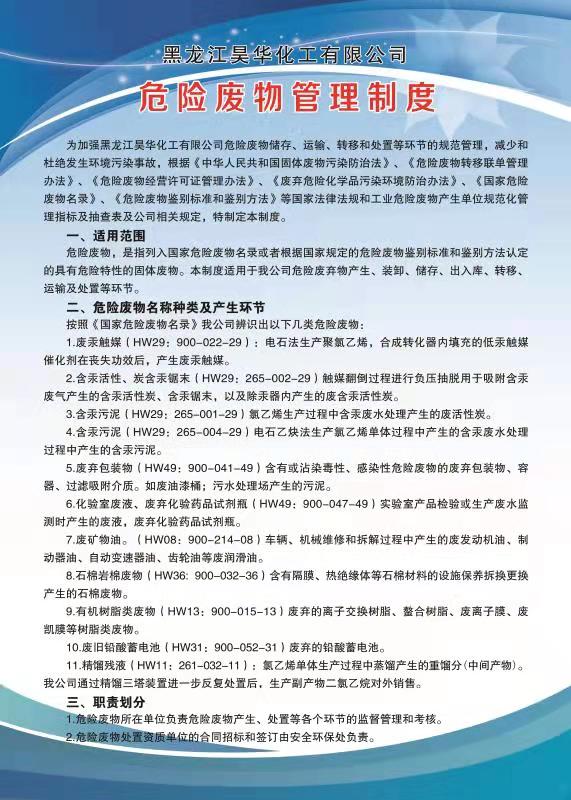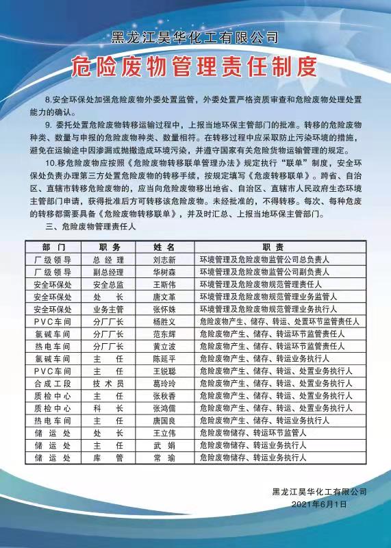 黑龍江昊華化工有限公司危險廢物管理責任制度